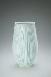 第72回日本伝統工芸展-青白磁鎬彫深鉢 川添貞秀